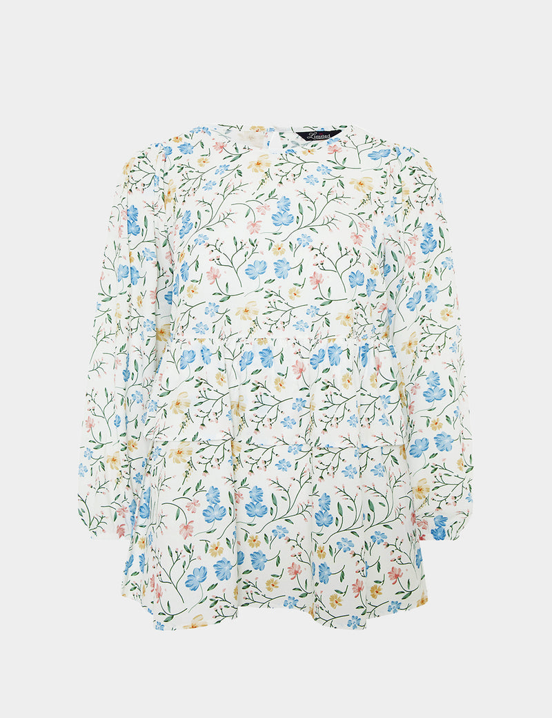 Fit & Fashion Notes:Looking for a transitional long sleeve top for those unpredictable weather days? Look no further than this floral frill waist blouse. Made from woven crepe fabric, it features a frill waist detail, long sleeves, and a scoop neckline. Completing with elasticated cuffs and securing with a keyhole button fastening at the back, this top is perfect to pair with jeans and your favorite sandals for summer.